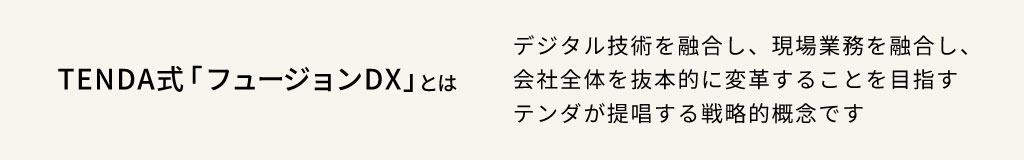 「TRAN-DX」とは、デジタル技術と現場業務を融合し、企業全体を抜本的に変革するTENDA式フュージョンDXソリューション。
